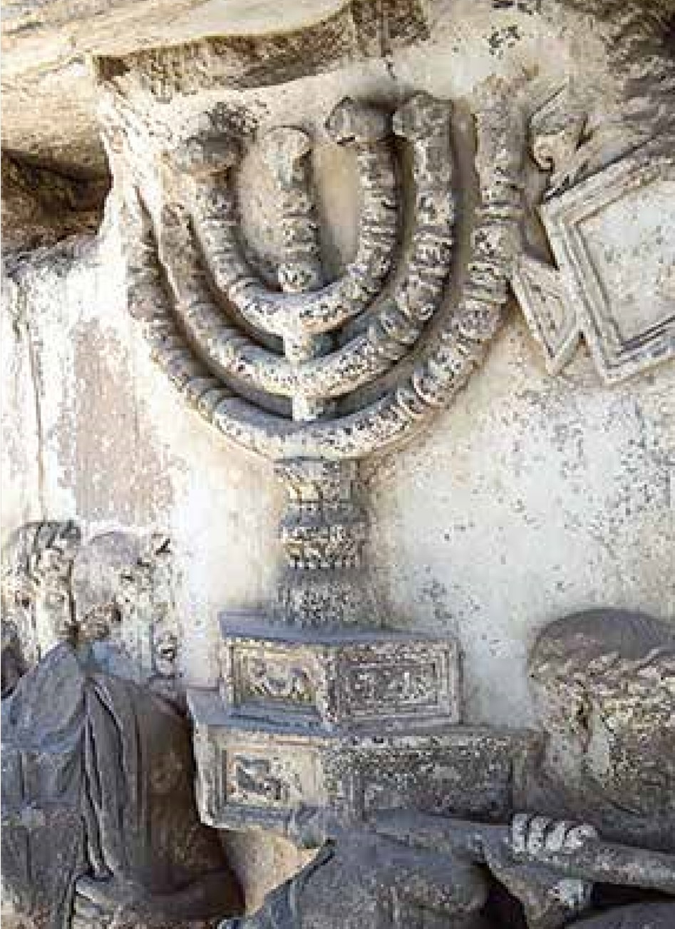 Above: the candlestick from the temple being carried off from Jerusalem – detail from the Arch of Titus in Rome, below.